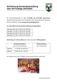 Schliessung Gemeindeverwaltung über die Festtage 2025/26